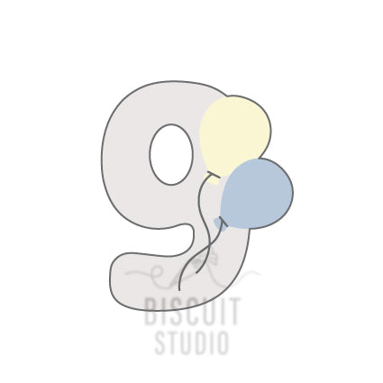 Approximate balloon number 9 cookie cutter size: 9cm x 7.5cm