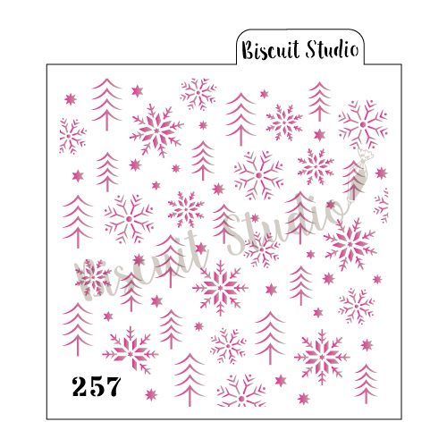 Trees & snowflakes background cookie stencil