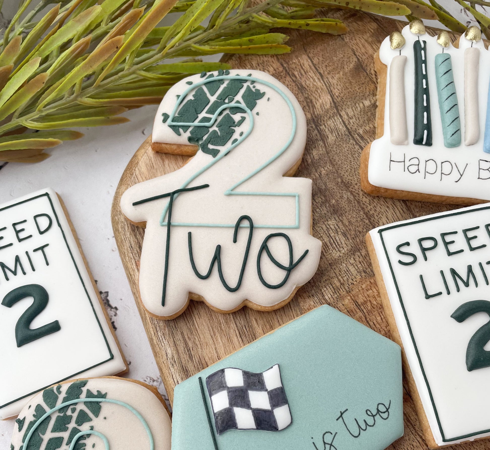 Cutter / stencil set. The stencils and cutter work together as a set, to help you either trace the numbers on or use royal icing.