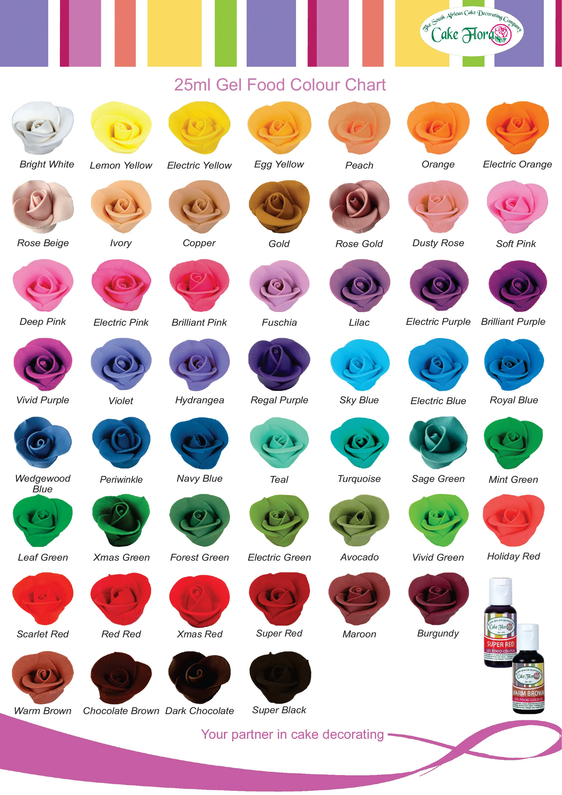 Cake flora GEL colours are what we use to colour our royal icing. These colours are not to be used in an airbrush machine.