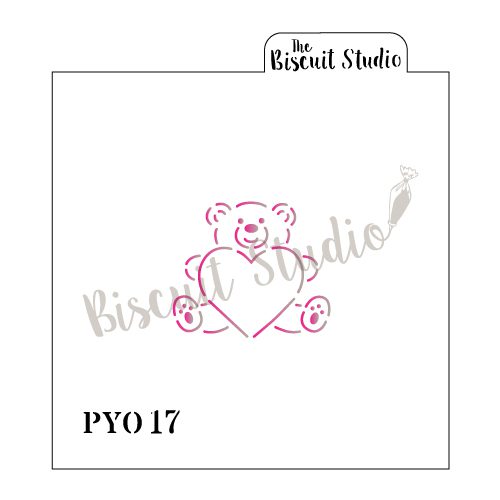 PYO Teddy with heart cookie stencil