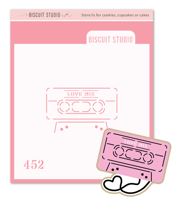 Our 'cassette' stencil fits the medium cassette cookie cutter perfectly, making cookie decorating quick and easy. Purchase individually or as a set.Â