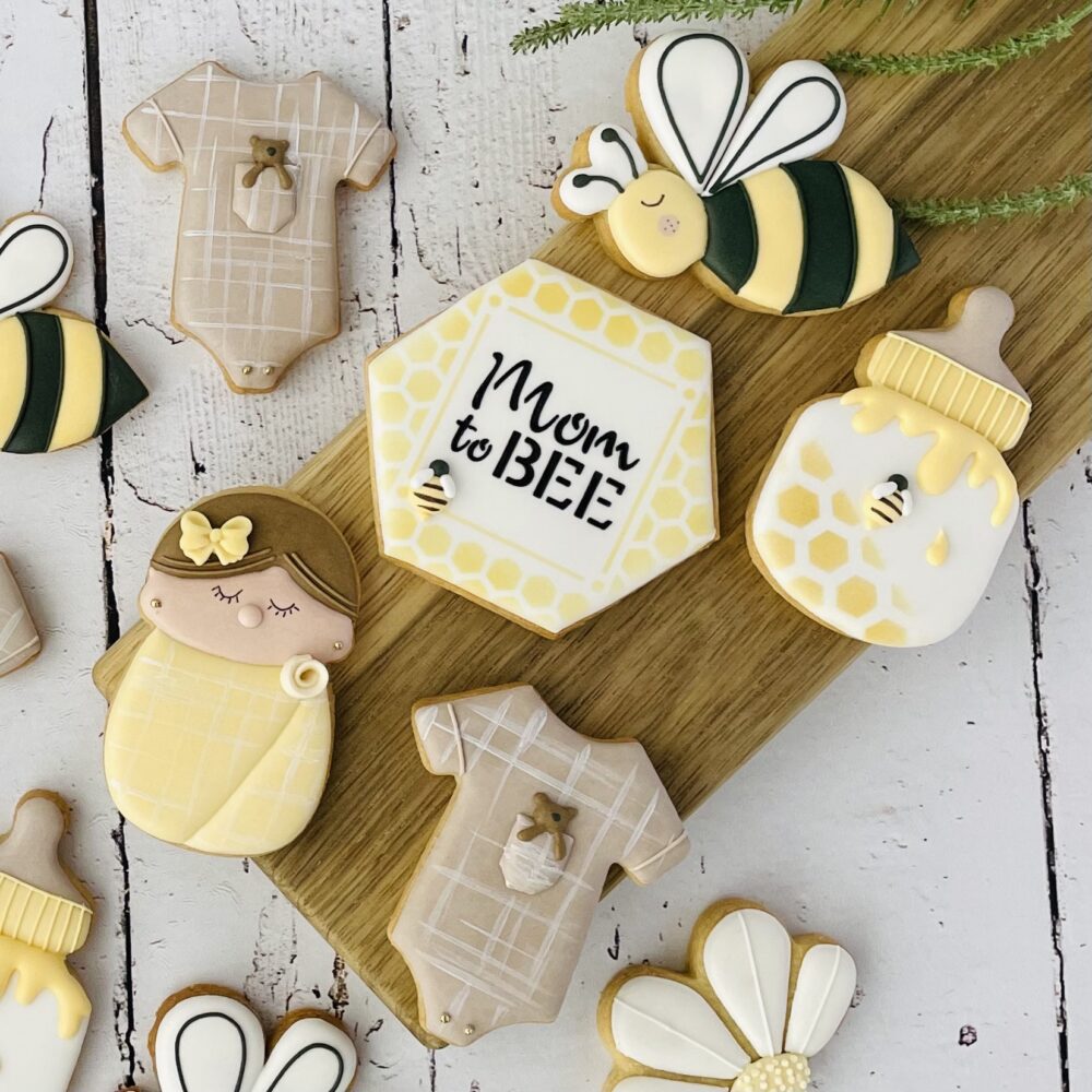 A 2 layered stencil, used together or separately. The blank square allows you to add the ‘Bee saying’ surrounded by the honeycomb.